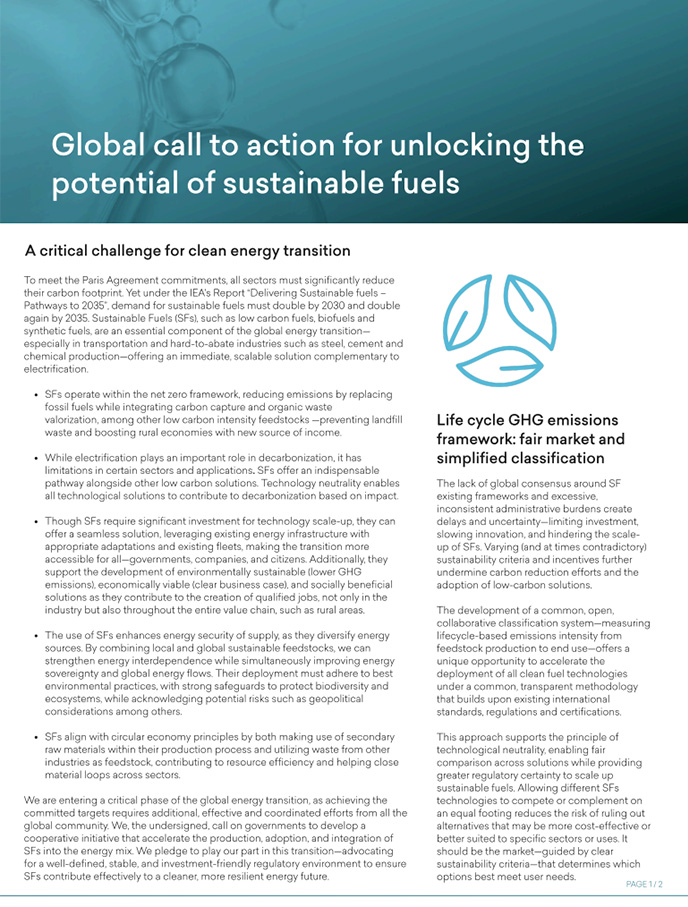 19 CEOs and leading executives of Europe’s prominent fuel manufacturing companies have jointly ...