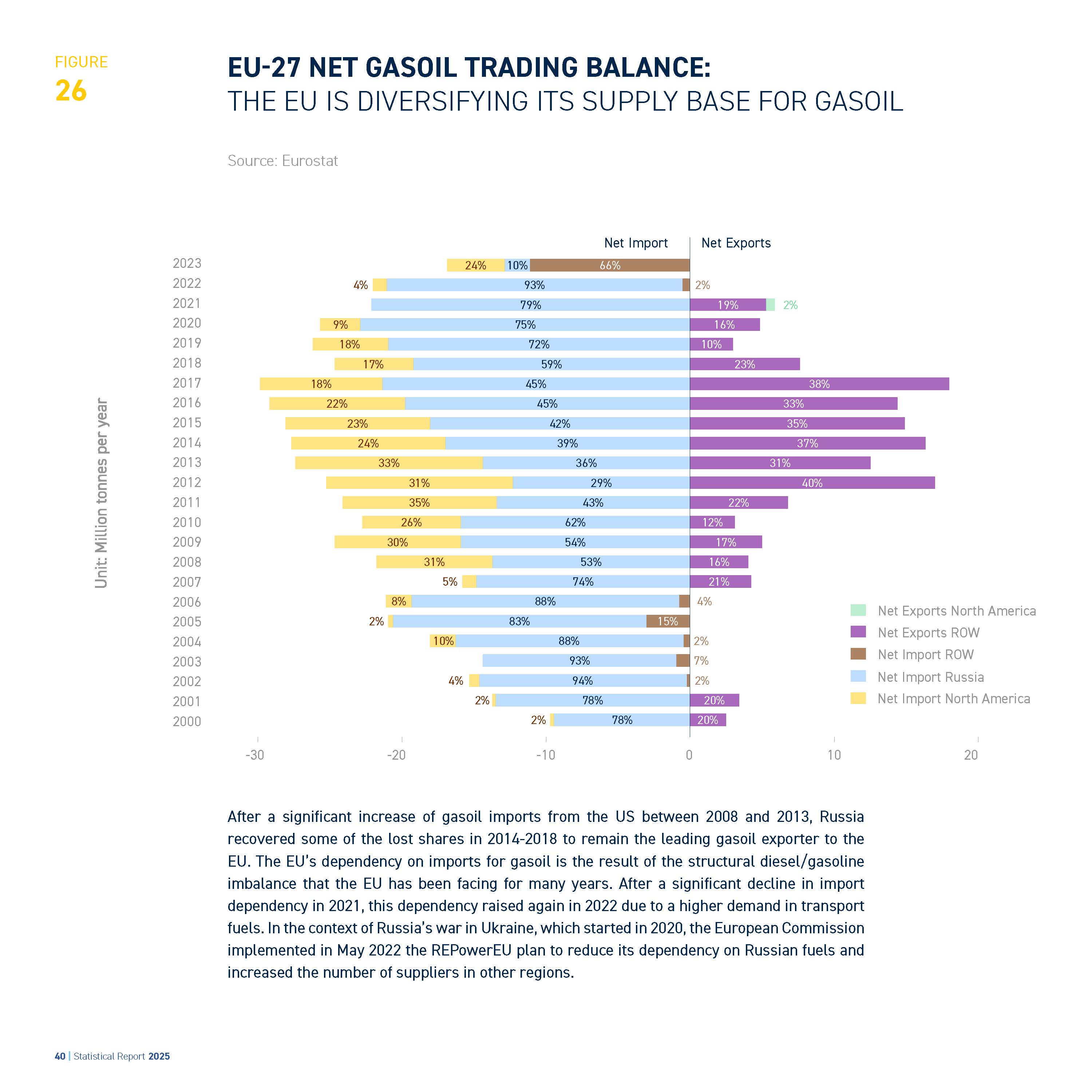 EU-27 net gasoil trading balance: the EU is diversifying its supply base for gasoil