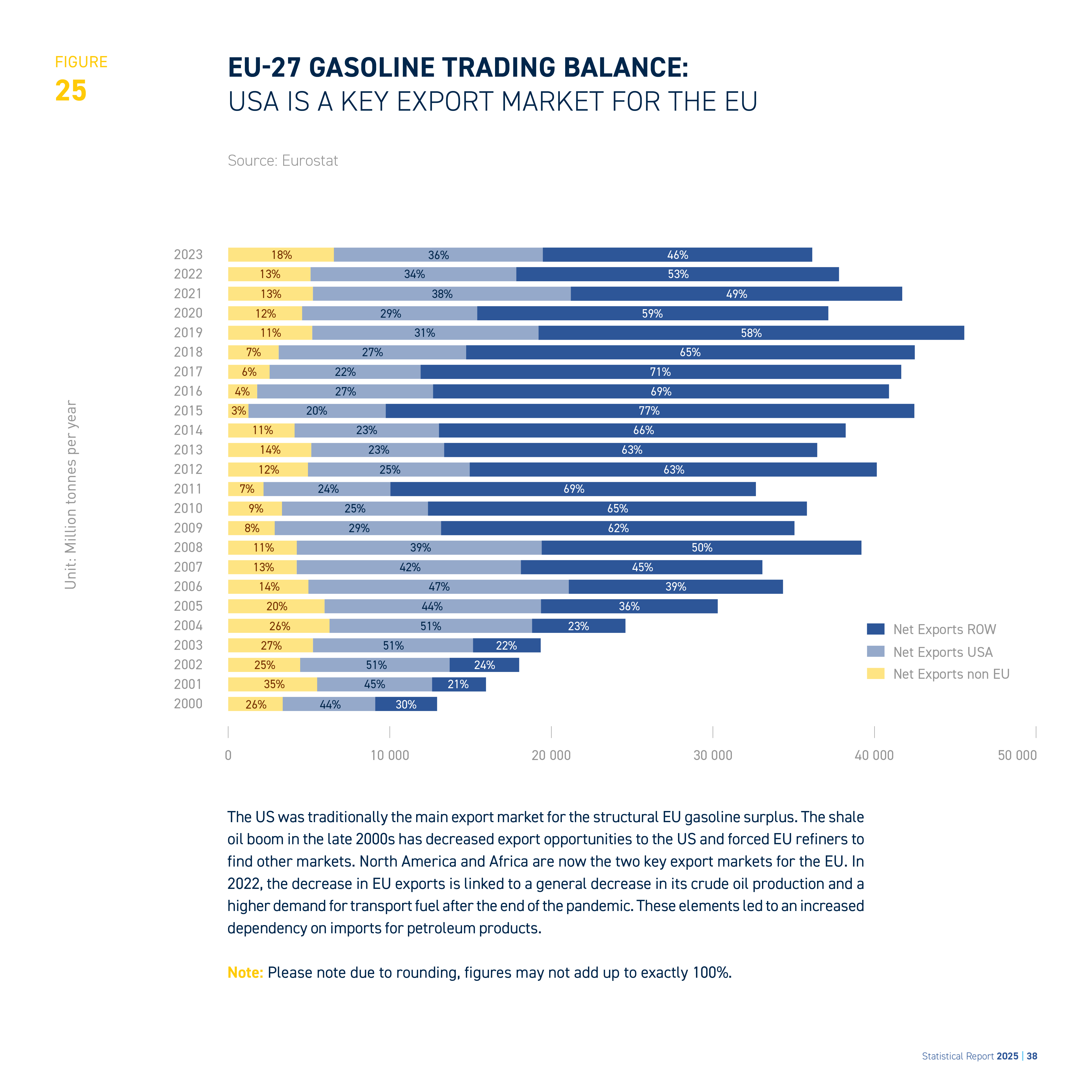 EU-27 gasoline trading balance: USA is a key export market for the EU